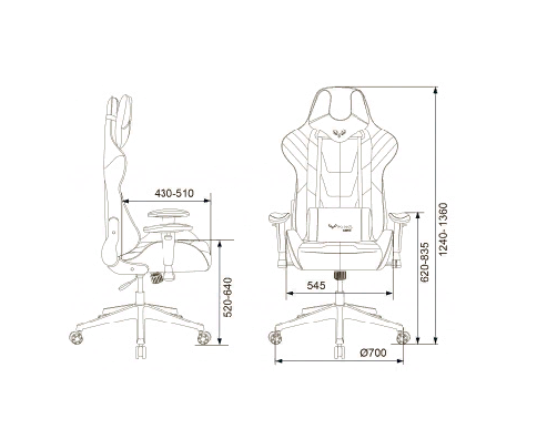 Высота с подлокотниками: 620-835