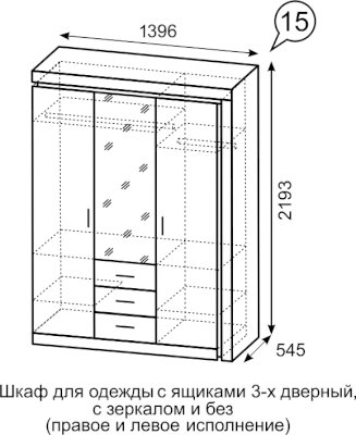 Шкаф с ящиками 3-х дверный с зеркалом №15