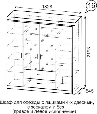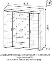 Шкаф с ящиками 4-х дверный с зеркалом №16