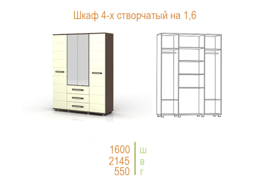 Шкаф 4-х створчатый 1600