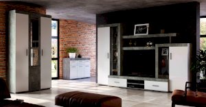 Стильный шкаф из коллекции мебели Инстайл поможет вам бережно хранить вещи и станет украшением вашего интерьера. Модель выполнена в комбинации белого и цвета бетон. Внутреннее наполнение состоит из отделения со штангой, полок для вещей и трех выдвижных ящиках на роликовых направляющих. Геометрические ручки под металл – очень удобны в использовании.